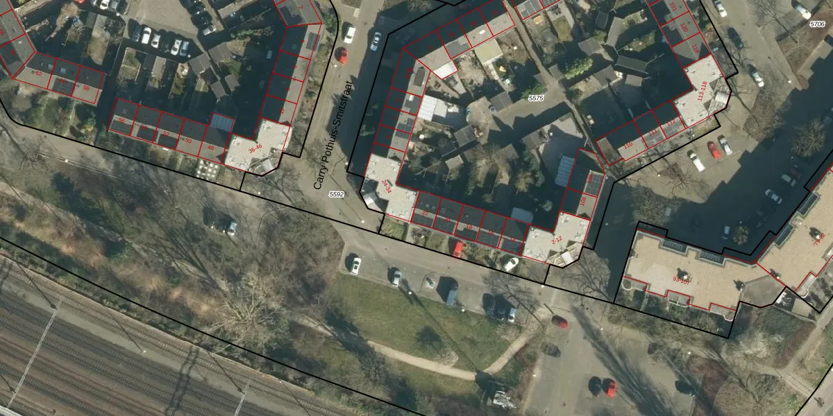 Het perceel waarop Clara Wichmannstraat 22 staat heeft een oppervlakte van 5065 m². Dit is een zeer groot perceel. De perceeloppervlakte wordt geregistreerd door het Kadaster. Gedetailleerde informatie over de maten van dit perceel kunt u vinden in het rapport Kadastrale kaart met maatvoering van Clara Wichmannstraat 22.