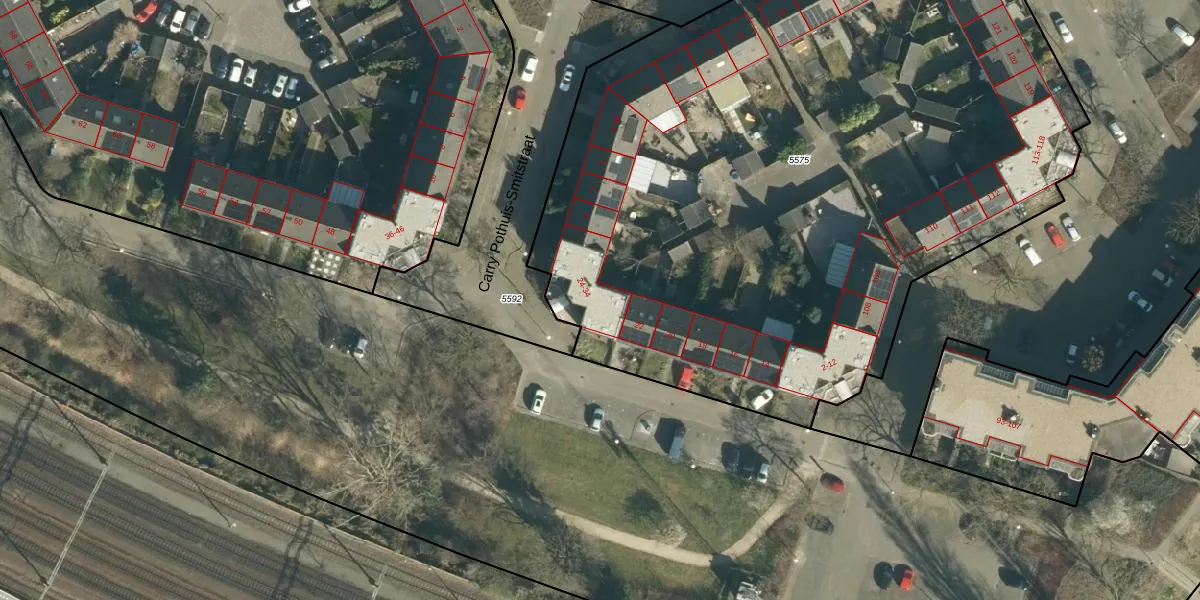 Het perceel waarop Clara Wichmannstraat 28 staat heeft een oppervlakte van 5065 m². Dit is een zeer groot perceel. De perceeloppervlakte wordt geregistreerd door het Kadaster. Gedetailleerde informatie over de maten van dit perceel kunt u vinden in het rapport Kadastrale kaart met maatvoering van Clara Wichmannstraat 28.