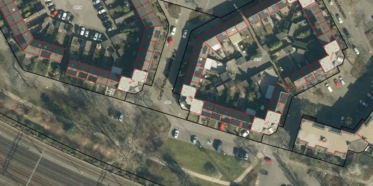 Het perceel waarop Clara Wichmannstraat 32 staat heeft een oppervlakte van 5065 m². Dit is een zeer groot perceel. De perceeloppervlakte wordt geregistreerd door het Kadaster. Gedetailleerde informatie over de maten van dit perceel kunt u vinden in het rapport Kadastrale kaart met maatvoering van Clara Wichmannstraat 32.