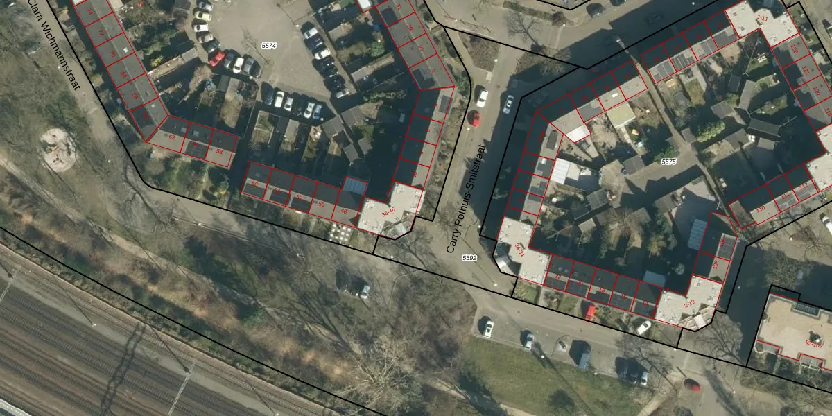 Het perceel waarop Clara Wichmannstraat 36 staat heeft een oppervlakte van 6989 m². Dit is een zeer groot perceel. De perceeloppervlakte wordt geregistreerd door het Kadaster. Gedetailleerde informatie over de maten van dit perceel kunt u vinden in het rapport Kadastrale kaart met maatvoering van Clara Wichmannstraat 36.