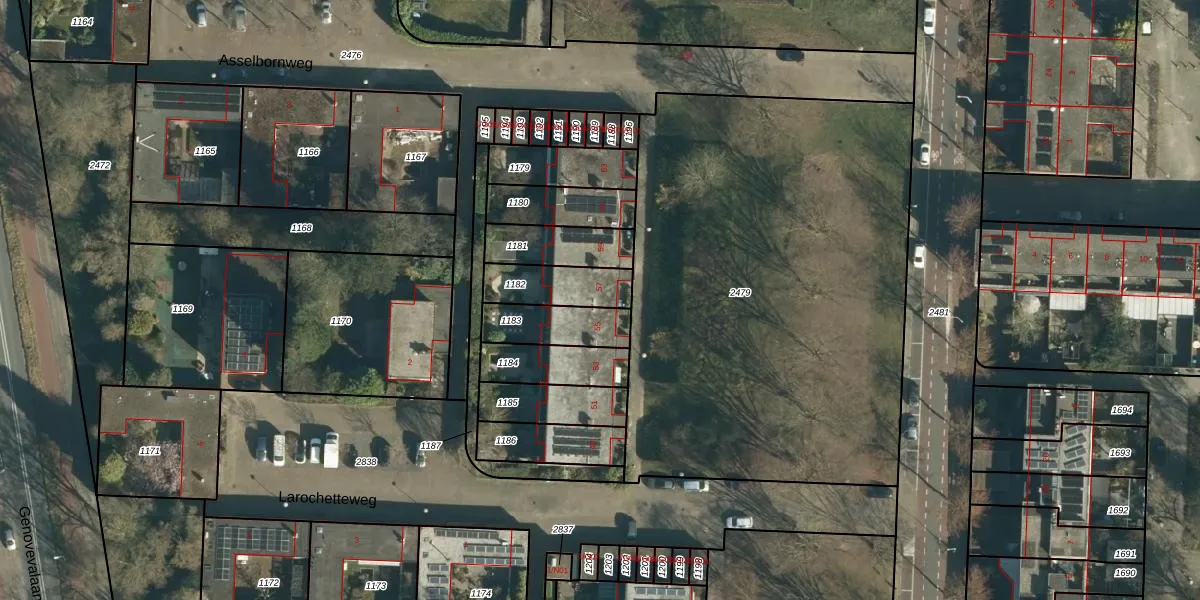 Gebruik de zoekbalk of klik op een perceel voor informatie over de adressen binnen dit perceel.