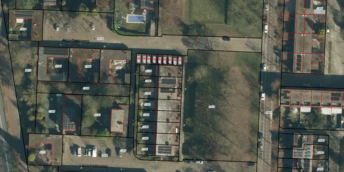 Gebruik de zoekbalk of klik op een perceel voor informatie over de adressen binnen dit perceel.