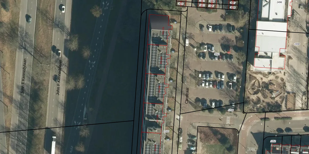 Het perceel waarop Cliostraat 183 staat heeft een oppervlakte van 3067 m². Dit is een zeer groot perceel. De perceeloppervlakte wordt geregistreerd door het Kadaster. Gedetailleerde informatie over de maten van dit perceel kunt u vinden in het rapport Kadastrale kaart met maatvoering van Cliostraat 183.