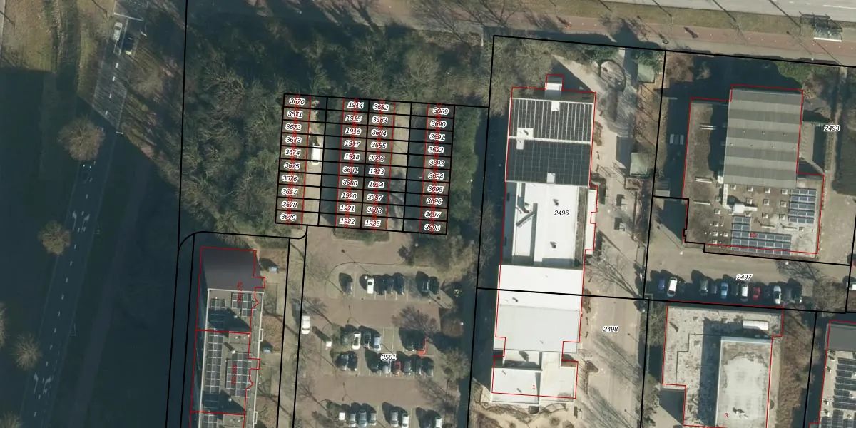 Gebruik de zoekbalk of klik op een perceel voor informatie over de adressen binnen dit perceel.