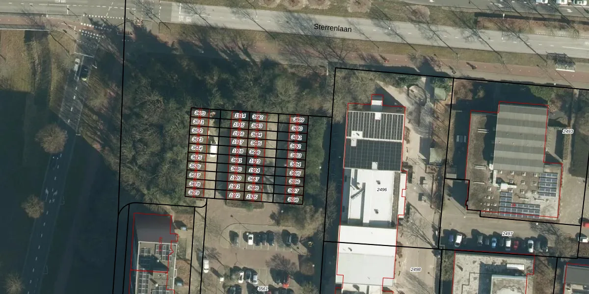 Gebruik de zoekbalk of klik op een perceel voor informatie over de adressen binnen dit perceel.