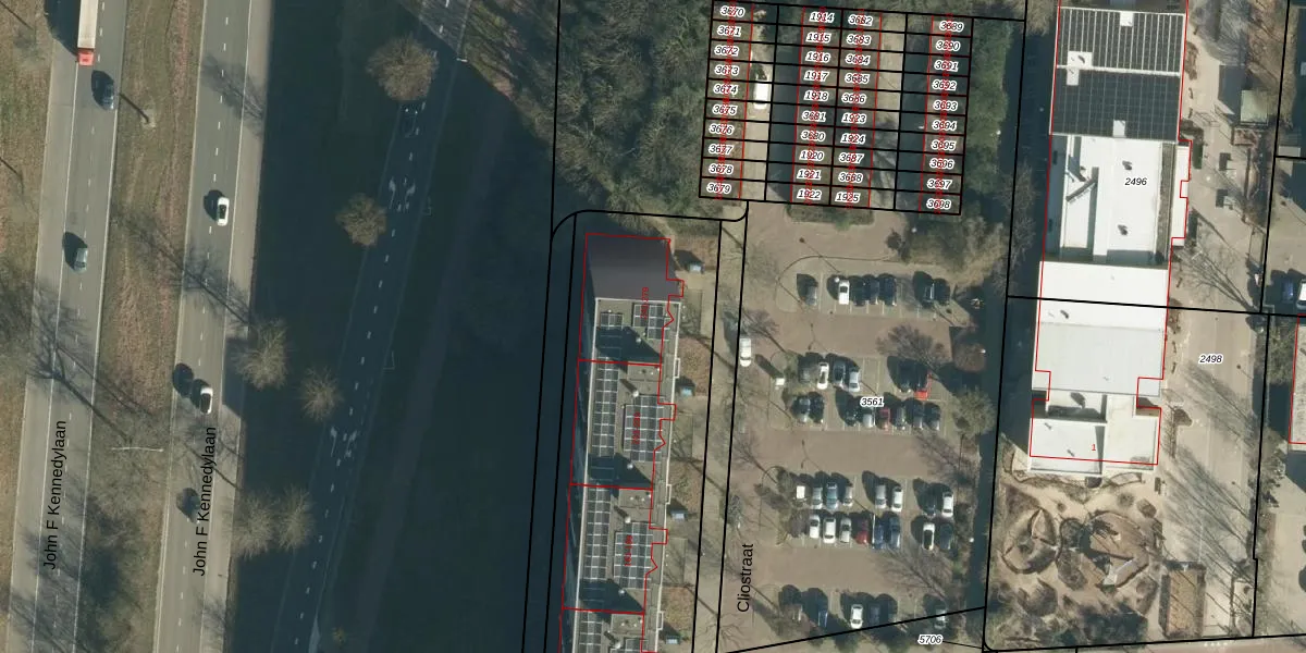 Het adres is gelegen op perceel 2593 in de sectie L en de kadastrale gemeente Woensel. De kadastrale aanduiding is aldus WSL01-L-2593. Het perceel is met 3067 m² relatief groot. Het gemiddelde ligt in de kadastrale gemeente Woensel op 1039,1 m². Het kleinste perceel in de kadastrale gemeente is 0 m² groot. De grootste perceeloppervlakte is 74,9 ha. Op het perceel liggen in totaal 140 adressen. De huidige grenzen van het perceel zijn digitaal in de Basisregistratie Kadaster (BRK) geregistreerd op 12-04-2006.