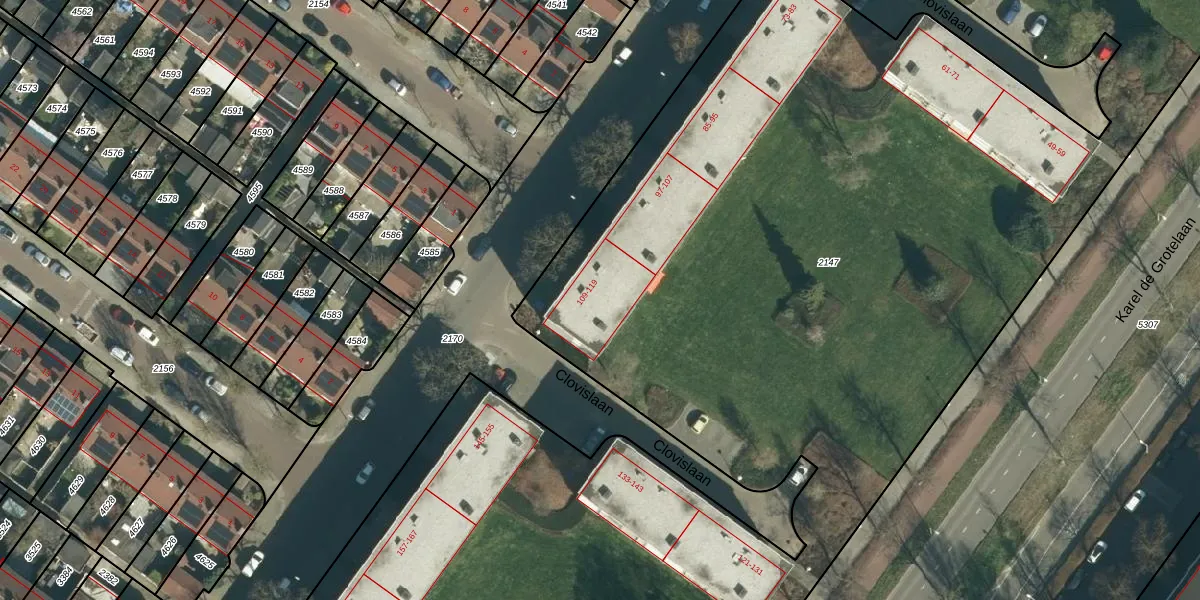 Clovislaan 109-G01 is gelegen op kadastraal perceel GTL01D2147. Deze kadastrale aanduiding is uniek en wordt gebruikt door het Kadaster om eigendomsrechten en andere zakelijke rechten vast te leggen. Het perceel maakt onderdeel uit van de kadastrale gemeente Gestel.