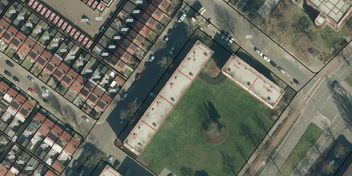 Het perceel waarop Clovislaan 13-G02 staat heeft een oppervlakte van 1,6 ha. Dit is een zeer groot perceel. De perceeloppervlakte wordt geregistreerd door het Kadaster. Gedetailleerde informatie over de maten van dit perceel kunt u vinden in het rapport Kadastrale kaart met maatvoering van Clovislaan 13-G02.