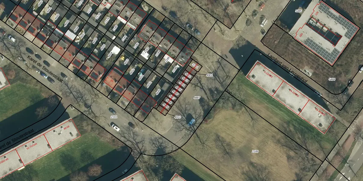 Gebruik de zoekbalk of klik op een perceel voor informatie over de adressen binnen dit perceel.