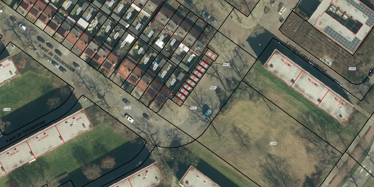 Gebruik de zoekbalk of klik op een perceel voor informatie over de adressen binnen dit perceel.
