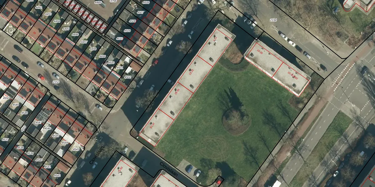 Het perceel waarop Clovislaan 33 staat heeft een oppervlakte van 1,6 ha. Dit is een zeer groot perceel. De perceeloppervlakte wordt geregistreerd door het Kadaster. Gedetailleerde informatie over de maten van dit perceel kunt u vinden in het rapport Kadastrale kaart met maatvoering van Clovislaan 33.