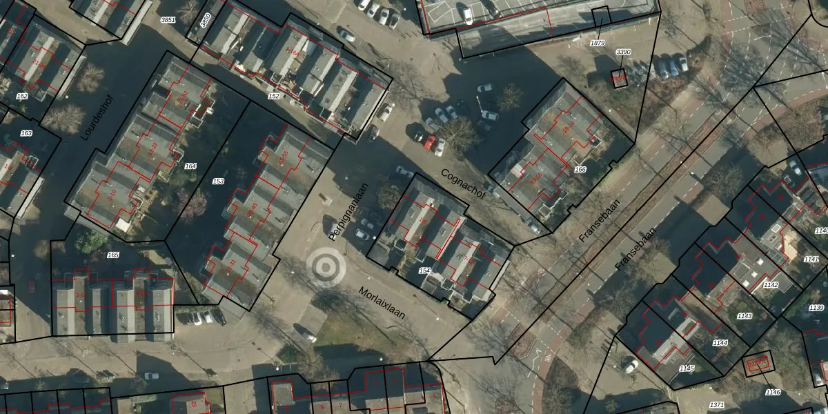 Het adres is gelegen op perceel 154 in de sectie S en de kadastrale gemeente Woensel. De kadastrale aanduiding is aldus WSL01-S-154. Het perceel is kleiner dan gemiddeld in Woensel. Het perceel is 726 m² groot, terwijl het gemiddelde ligt op 1038,98 m². Het grootste perceel in de kadastrale gemeente is 74,9 ha. Het kleinste perceel heeft een oppervlakte van 0 m². Op het perceel zijn 12 adressen aanwezig. In de Basisregistratie Kadaster (BRK) werden de grenzen van het perceel geregistreerd op 24-04-2006.