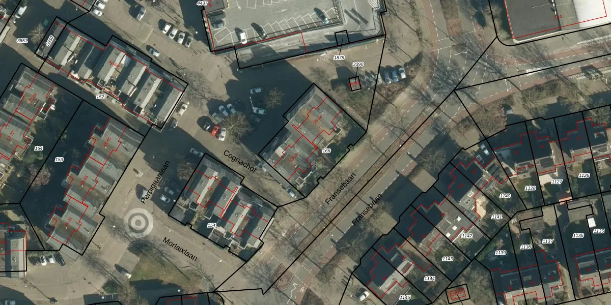 Cognachof 18 is gelegen op kadastraal perceel WSL01S166. Deze kadastrale aanduiding is uniek en wordt gebruikt door het Kadaster om eigendomsrechten en andere zakelijke rechten vast te leggen. Het perceel maakt onderdeel uit van de kadastrale gemeente Woensel.