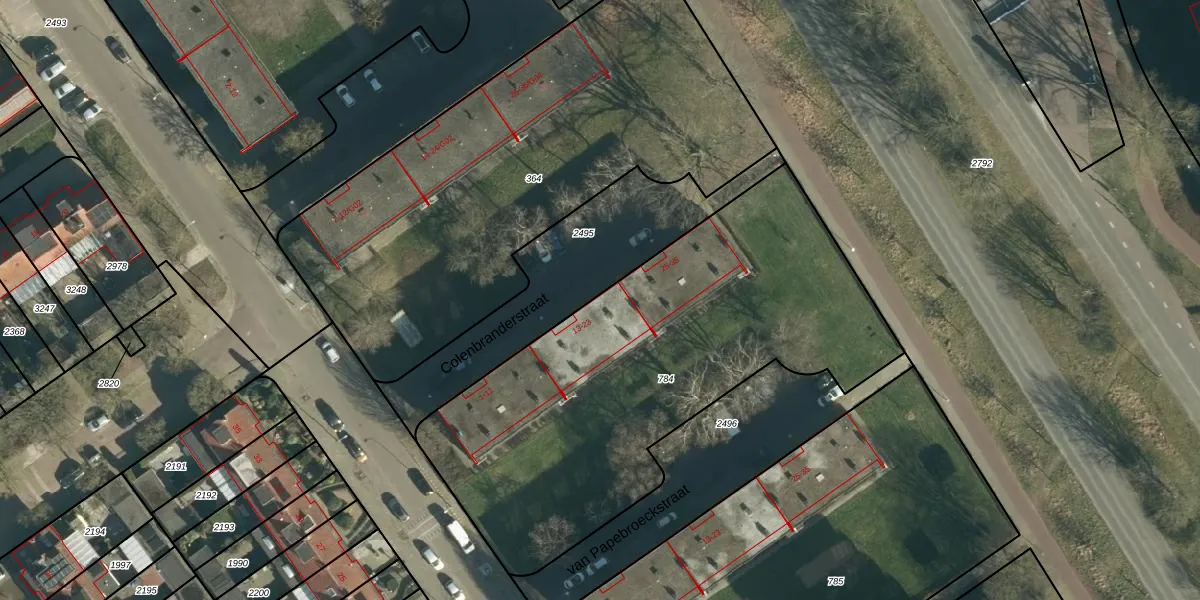 Het perceel waarop Colenbranderstraat 13 staat heeft een oppervlakte van 2313 m². Dit is een zeer groot perceel. De perceeloppervlakte wordt geregistreerd door het Kadaster. Gedetailleerde informatie over de maten van dit perceel kunt u vinden in het rapport Kadastrale kaart met maatvoering van Colenbranderstraat 13.