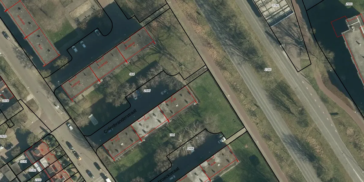 Het perceel waarop Colenbranderstraat 27 staat heeft een oppervlakte van 2313 m². Dit is een zeer groot perceel. De perceeloppervlakte wordt geregistreerd door het Kadaster. Gedetailleerde informatie over de maten van dit perceel kunt u vinden in het rapport Kadastrale kaart met maatvoering van Colenbranderstraat 27.