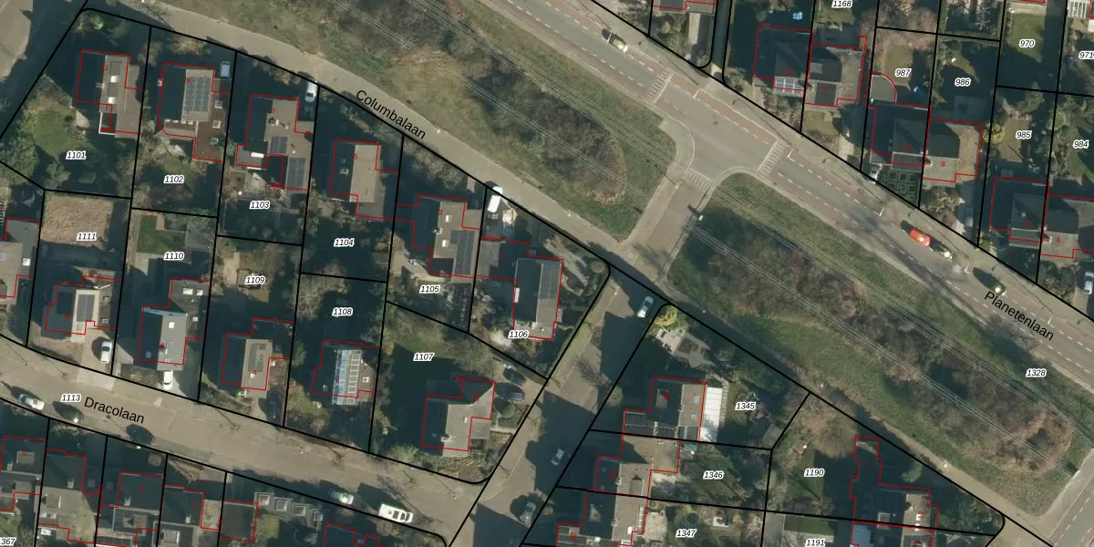 Het perceel waarop Columbalaan 1 staat heeft een oppervlakte van 537 m². Dit is een groot perceel. De perceeloppervlakte wordt geregistreerd door het Kadaster. Gedetailleerde informatie over de maten van dit perceel kunt u vinden in het rapport Kadastrale kaart met maatvoering van Columbalaan 1.