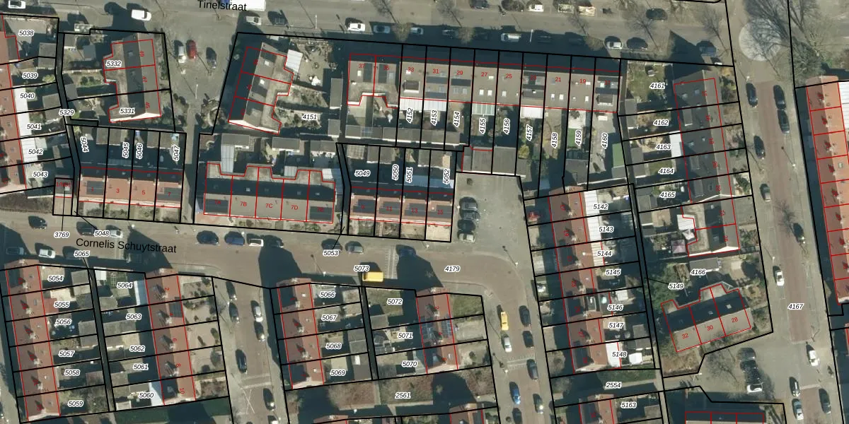 Cornelis Schuytstraat 13 is gelegen op kadastraal perceel GTL01D5051. Deze kadastrale aanduiding is uniek en wordt gebruikt door het Kadaster om eigendomsrechten en andere zakelijke rechten vast te leggen. Het perceel maakt onderdeel uit van de kadastrale gemeente Gestel.