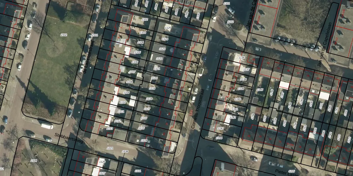 Het perceel waarop Cornelis Trooststraat 12 staat heeft een oppervlakte van 167 m². Dit is een middelgroot perceel. De perceeloppervlakte wordt geregistreerd door het Kadaster. Gedetailleerde informatie over de maten van dit perceel kunt u vinden in het rapport Kadastrale kaart met maatvoering van Cornelis Trooststraat 12.