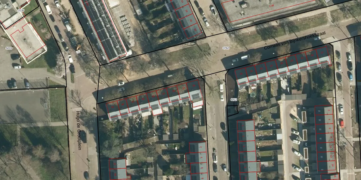 Het perceel waarop Cornelis van Bijnkershoekstraat 37 staat heeft een oppervlakte van 1,1 ha. Dit is een zeer groot perceel. De perceeloppervlakte wordt geregistreerd door het Kadaster. Gedetailleerde informatie over de maten van dit perceel kunt u vinden in het rapport Kadastrale kaart met maatvoering van Cornelis van Bijnkershoekstraat 37.