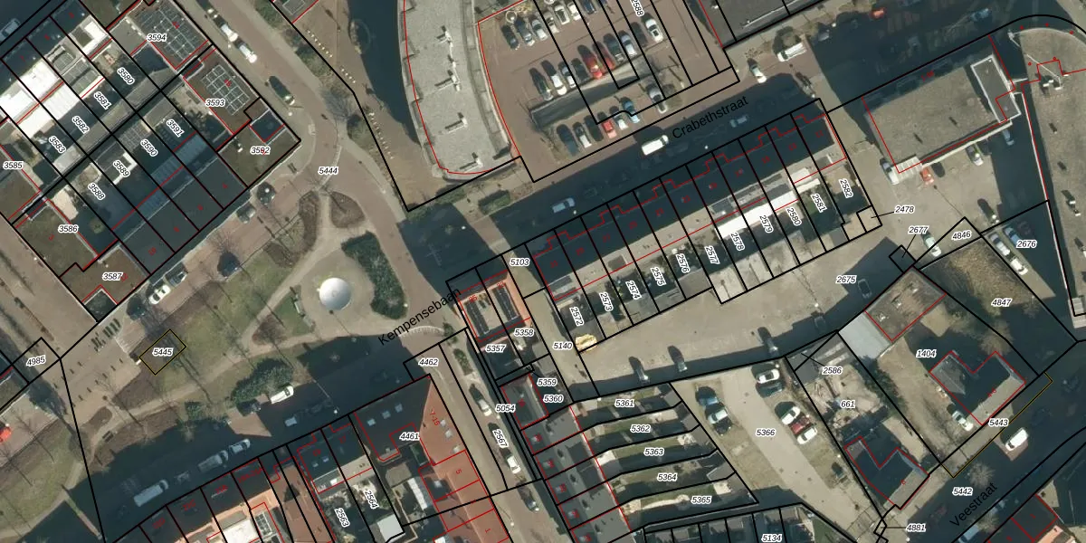Gebruik de zoekbalk of klik op een perceel voor informatie over de adressen binnen dit perceel.