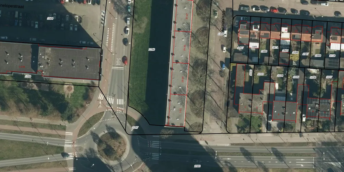 Creonlaan 13 is gelegen op kadastraal perceel WSL01K2246. Deze kadastrale aanduiding is uniek en wordt gebruikt door het Kadaster om eigendomsrechten en andere zakelijke rechten vast te leggen. Het perceel maakt onderdeel uit van de kadastrale gemeente Woensel.