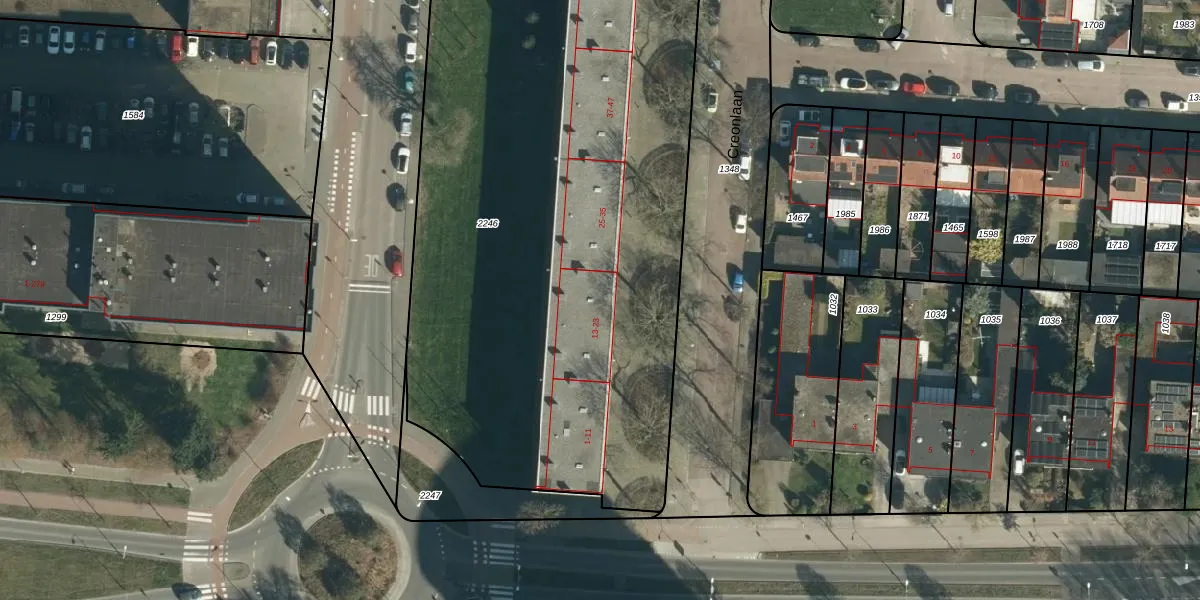 Creonlaan 23 is gelegen op kadastraal perceel WSL01K2246. Deze kadastrale aanduiding is uniek en wordt gebruikt door het Kadaster om eigendomsrechten en andere zakelijke rechten vast te leggen. Het perceel maakt onderdeel uit van de kadastrale gemeente Woensel.