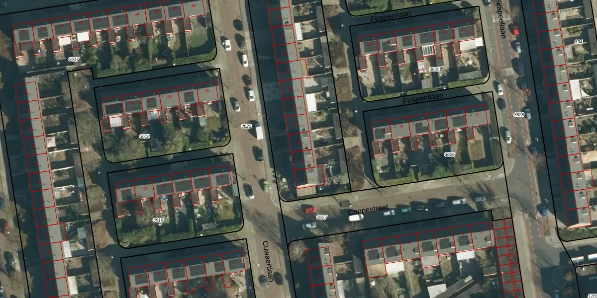 Het perceel waarop Cuwaertlaan 18 staat heeft een oppervlakte van 4017 m². Dit is een zeer groot perceel. De perceeloppervlakte wordt geregistreerd door het Kadaster. Gedetailleerde informatie over de maten van dit perceel kunt u vinden in het rapport Kadastrale kaart met maatvoering van Cuwaertlaan 18.