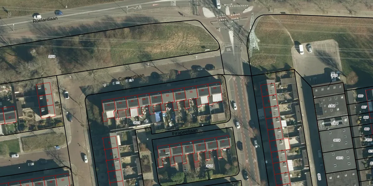 Het perceel waarop Cuwaertlaan 56 staat heeft een oppervlakte van 4017 m². Dit is een zeer groot perceel. De perceeloppervlakte wordt geregistreerd door het Kadaster. Gedetailleerde informatie over de maten van dit perceel kunt u vinden in het rapport Kadastrale kaart met maatvoering van Cuwaertlaan 56.