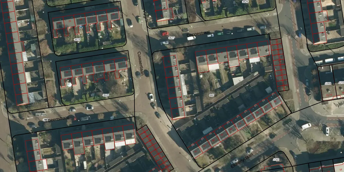Het perceel waarop Cuwaertlaan 8 staat heeft een oppervlakte van 4317 m². Dit is een zeer groot perceel. De perceeloppervlakte wordt geregistreerd door het Kadaster. Gedetailleerde informatie over de maten van dit perceel kunt u vinden in het rapport Kadastrale kaart met maatvoering van Cuwaertlaan 8.