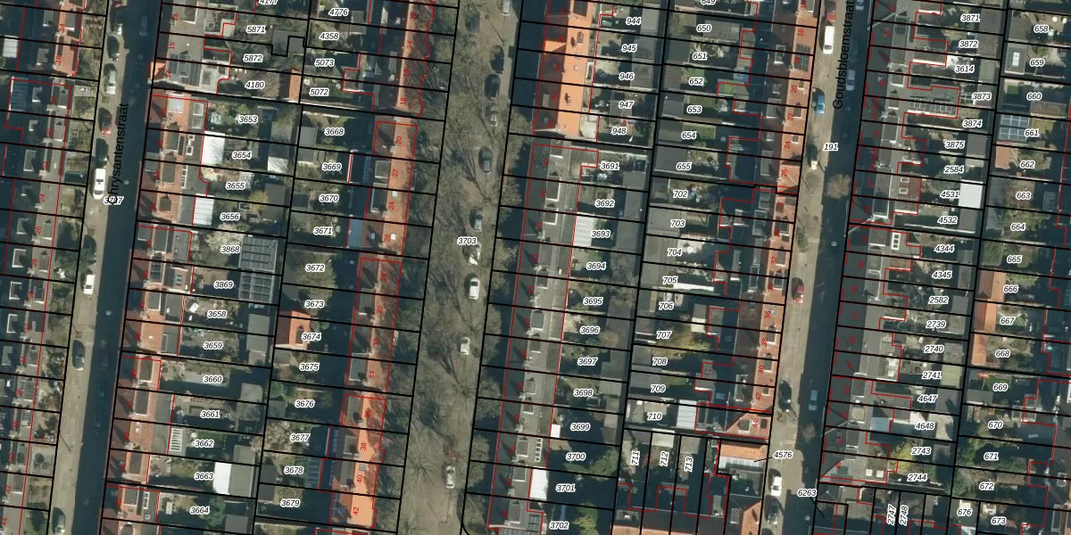 Gebruik de zoekbalk of klik op een perceel voor informatie over de adressen binnen dit perceel.