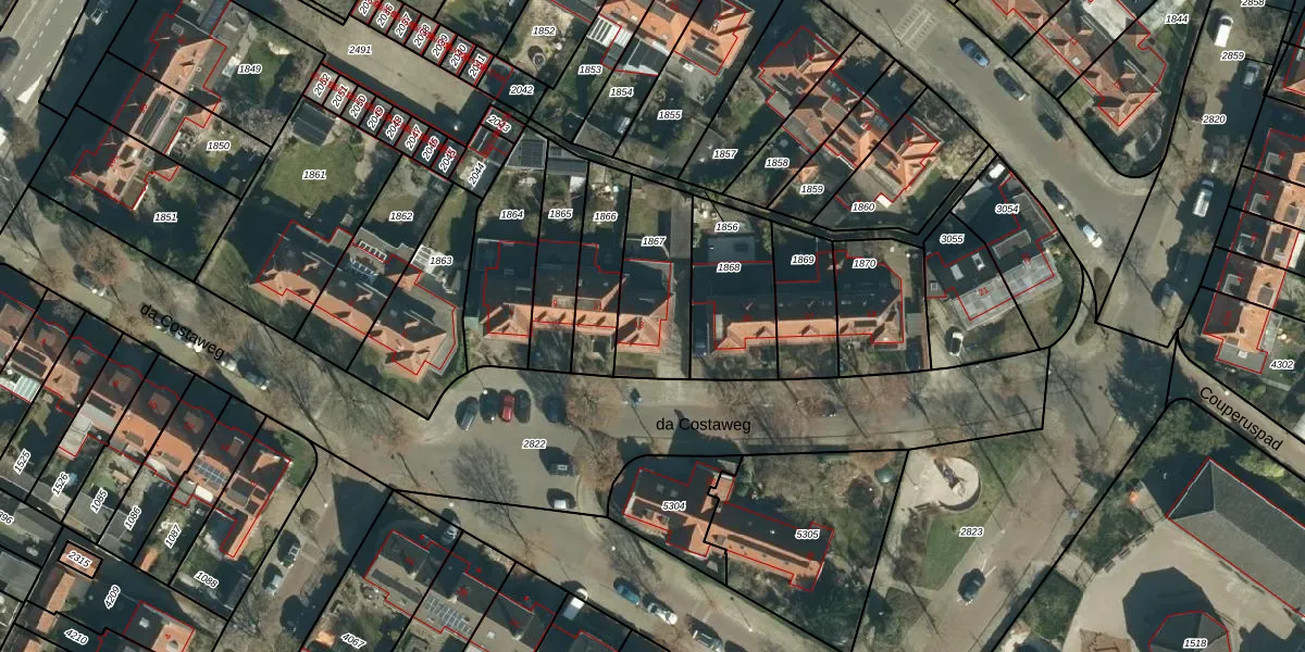 Het perceel waarop da Costaweg 13 staat heeft een oppervlakte van 315 m². Dit is een groot perceel. De perceeloppervlakte wordt geregistreerd door het Kadaster. Gedetailleerde informatie over de maten van dit perceel kunt u vinden in het rapport Kadastrale kaart met maatvoering van da Costaweg 13.