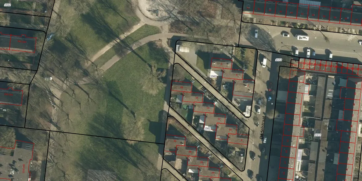 Het perceel waarop Dadelstraat 18 staat heeft een oppervlakte van 1163 m². Dit is een zeer groot perceel. De perceeloppervlakte wordt geregistreerd door het Kadaster. Gedetailleerde informatie over de maten van dit perceel kunt u vinden in het rapport Kadastrale kaart met maatvoering van Dadelstraat 18.