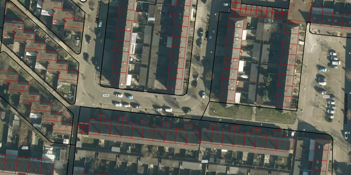 Het perceel waarop Dadelstraat 25 staat heeft een oppervlakte van 4063 m². Dit is een zeer groot perceel. De perceeloppervlakte wordt geregistreerd door het Kadaster. Gedetailleerde informatie over de maten van dit perceel kunt u vinden in het rapport Kadastrale kaart met maatvoering van Dadelstraat 25.