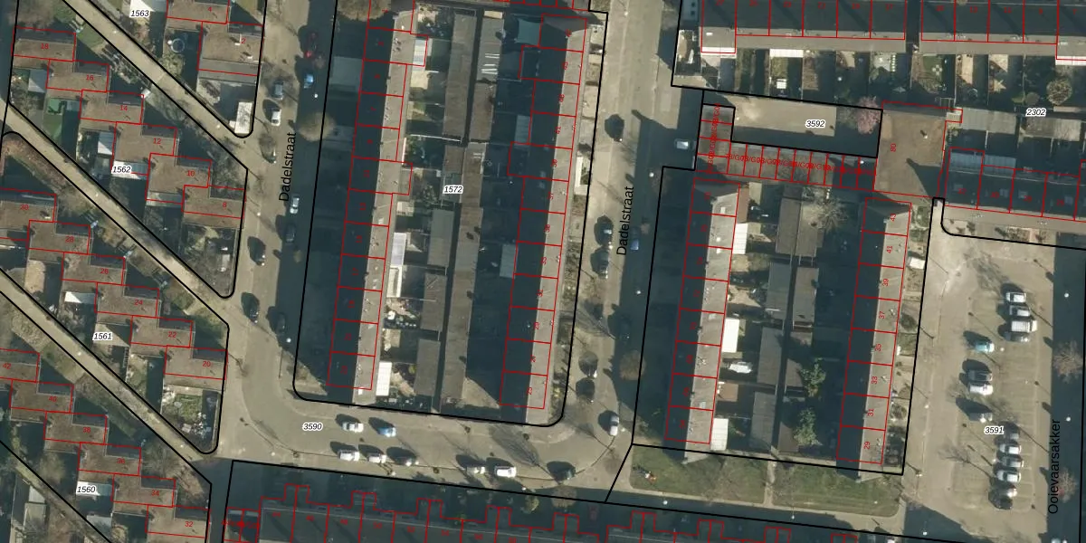 Het perceel waarop Dadelstraat 33 staat heeft een oppervlakte van 4063 m². Dit is een zeer groot perceel. De perceeloppervlakte wordt geregistreerd door het Kadaster. Gedetailleerde informatie over de maten van dit perceel kunt u vinden in het rapport Kadastrale kaart met maatvoering van Dadelstraat 33.