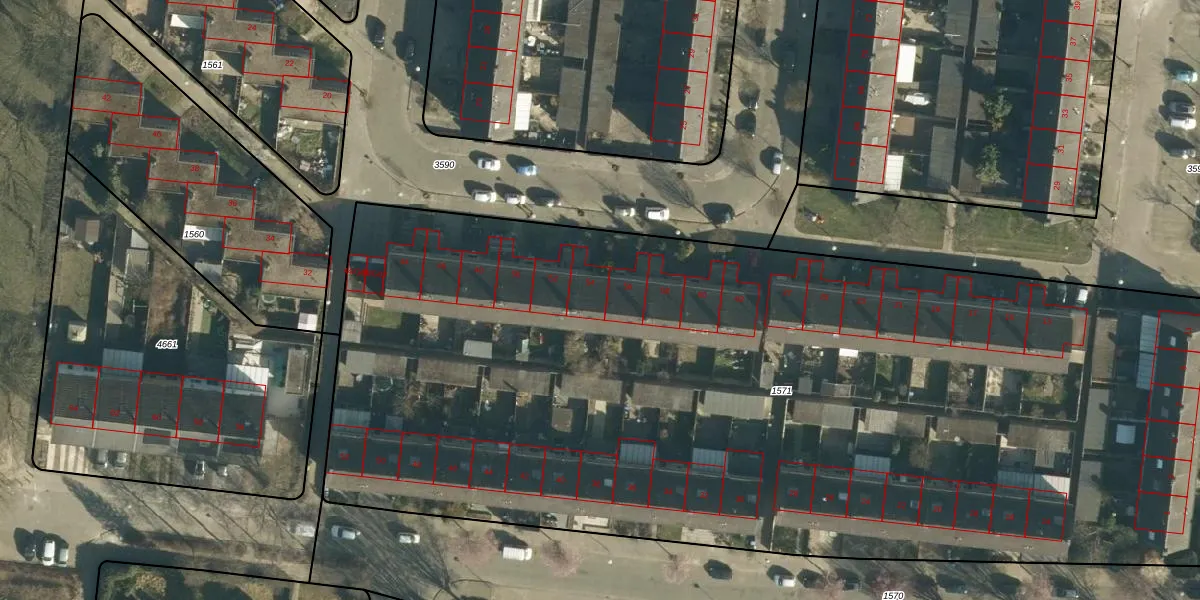 Het perceel waarop Dadelstraat 54 staat heeft een oppervlakte van 7170 m². Dit is een zeer groot perceel. De perceeloppervlakte wordt geregistreerd door het Kadaster. Gedetailleerde informatie over de maten van dit perceel kunt u vinden in het rapport Kadastrale kaart met maatvoering van Dadelstraat 54.