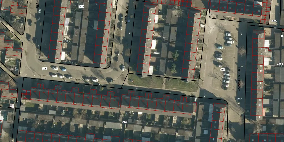 Het perceel waarop Dadelstraat 64 staat heeft een oppervlakte van 6370 m². Dit is een zeer groot perceel. De perceeloppervlakte wordt geregistreerd door het Kadaster. Gedetailleerde informatie over de maten van dit perceel kunt u vinden in het rapport Kadastrale kaart met maatvoering van Dadelstraat 64.