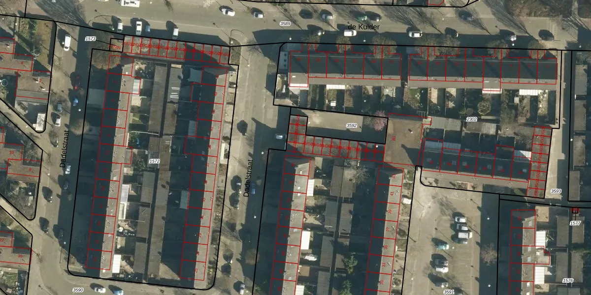Het perceel waarop Dadelstraat 78-G01 staat heeft een oppervlakte van 6370 m². Dit is een zeer groot perceel. De perceeloppervlakte wordt geregistreerd door het Kadaster. Gedetailleerde informatie over de maten van dit perceel kunt u vinden in het rapport Kadastrale kaart met maatvoering van Dadelstraat 78-G01.