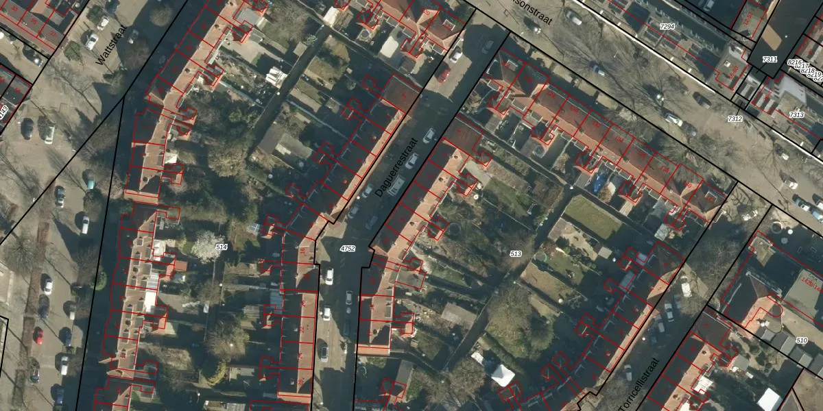Daguerrestraat 7 is gelegen op kadastraal perceel WSL01G513. Deze kadastrale aanduiding is uniek en wordt gebruikt door het Kadaster om eigendomsrechten en andere zakelijke rechten vast te leggen. Het perceel maakt onderdeel uit van de kadastrale gemeente Woensel.