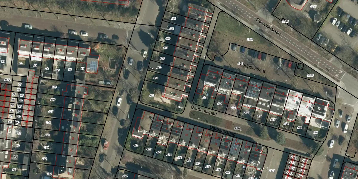 Het perceel waarop Dardanuspad 3 staat heeft een oppervlakte van 150 m². Dit is een middelgroot perceel. De perceeloppervlakte wordt geregistreerd door het Kadaster. Gedetailleerde informatie over de maten van dit perceel kunt u vinden in het rapport Kadastrale kaart met maatvoering van Dardanuspad 3.