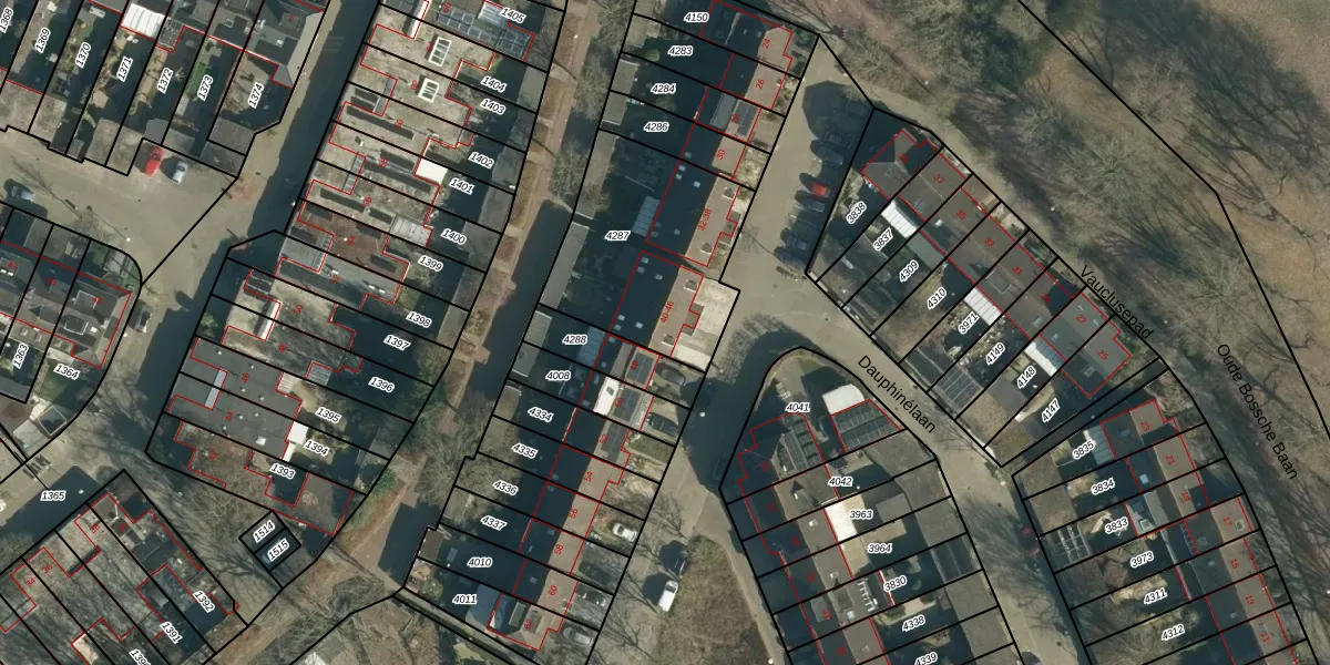 Het perceel waarop Dauphinélaan 46 staat heeft een oppervlakte van 735 m². Dit is een groot perceel. De perceeloppervlakte wordt geregistreerd door het Kadaster. Gedetailleerde informatie over de maten van dit perceel kunt u vinden in het rapport Kadastrale kaart met maatvoering van Dauphinélaan 46.