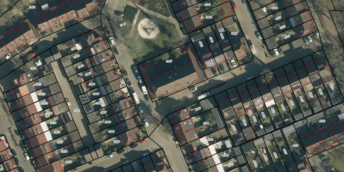 Dauphinélaan 7 is gelegen op kadastraal perceel WSL01S1497. Deze kadastrale aanduiding is uniek en wordt gebruikt door het Kadaster om eigendomsrechten en andere zakelijke rechten vast te leggen. Het perceel maakt onderdeel uit van de kadastrale gemeente Woensel.