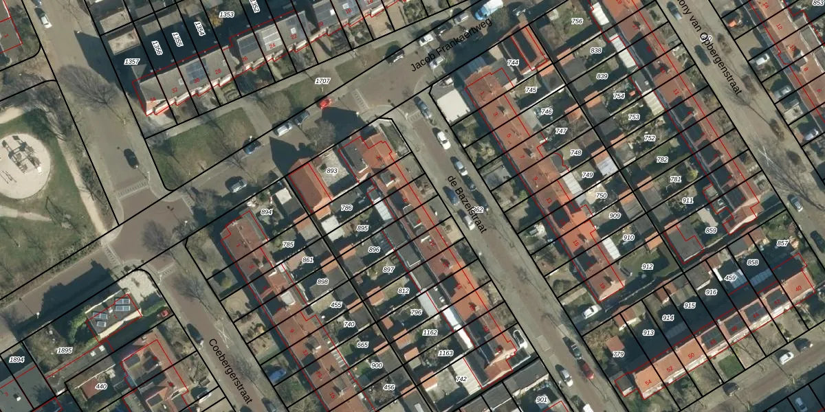 Het perceel waarop de Bazelstraat 6 staat heeft een oppervlakte van 178 m². Dit is een middelgroot perceel. De perceeloppervlakte wordt geregistreerd door het Kadaster. Gedetailleerde informatie over de maten van dit perceel kunt u vinden in het rapport Kadastrale kaart met maatvoering van de Bazelstraat 6.