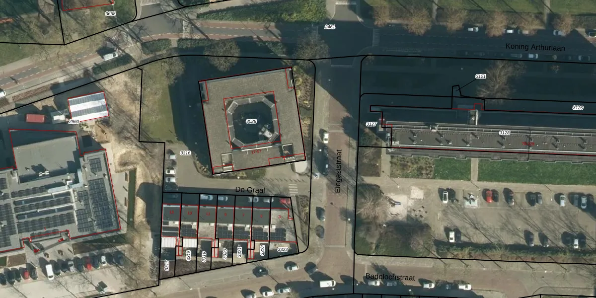 Het perceel waarop De Graal 45 staat heeft een oppervlakte van 995 m². Dit is een groot perceel. De perceeloppervlakte wordt geregistreerd door het Kadaster. Gedetailleerde informatie over de maten van dit perceel kunt u vinden in het rapport Kadastrale kaart met maatvoering van De Graal 45.