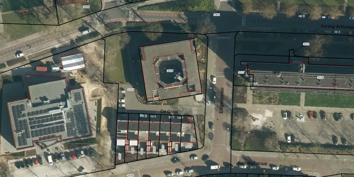 Het perceel waarop De Graal 55 staat heeft een oppervlakte van 995 m². Dit is een groot perceel. De perceeloppervlakte wordt geregistreerd door het Kadaster. Gedetailleerde informatie over de maten van dit perceel kunt u vinden in het rapport Kadastrale kaart met maatvoering van De Graal 55.
