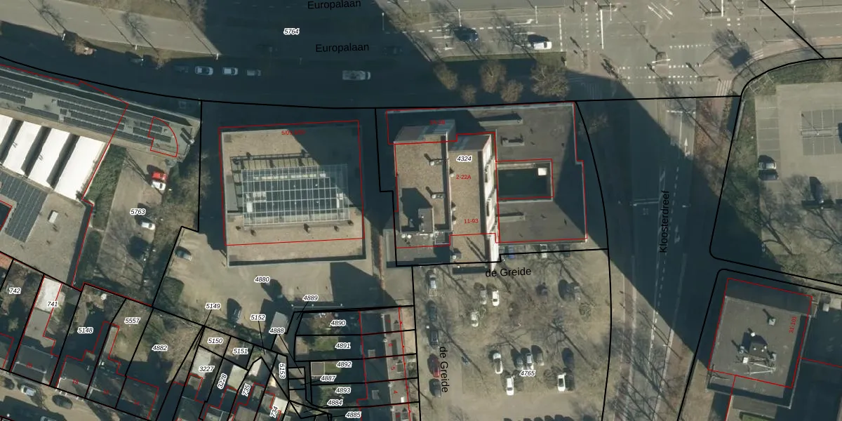 Het perceel waarop de Greide 63 staat heeft een oppervlakte van 1815 m². Dit is een zeer groot perceel. De perceeloppervlakte wordt geregistreerd door het Kadaster. Gedetailleerde informatie over de maten van dit perceel kunt u vinden in het rapport Kadastrale kaart met maatvoering van de Greide 63.