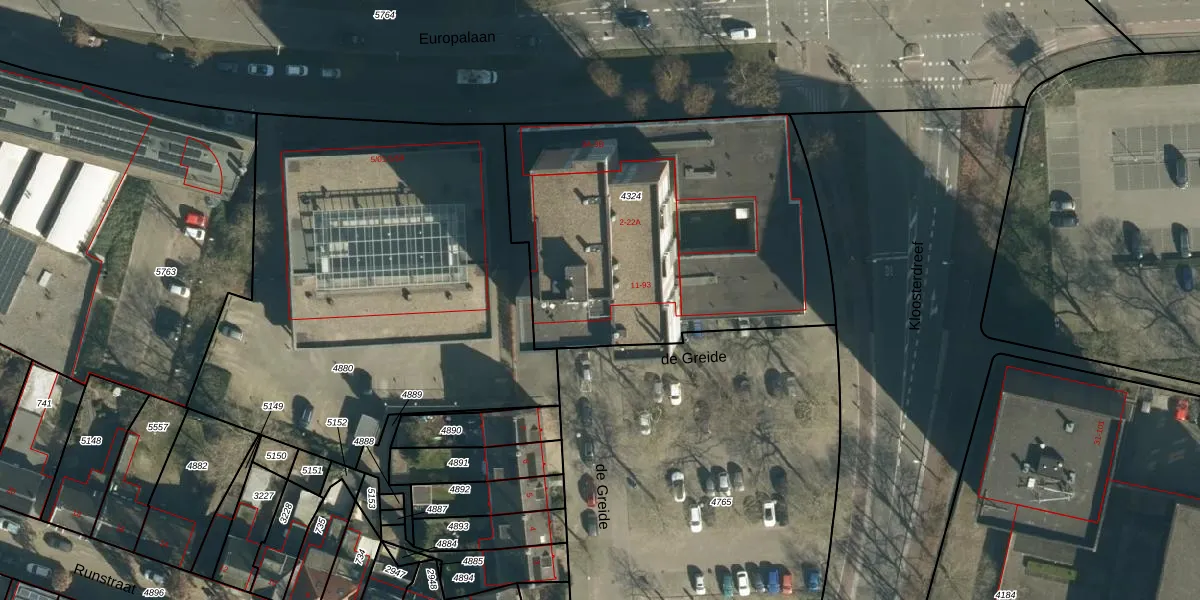 Het perceel waarop de Greide 83 staat heeft een oppervlakte van 1815 m². Dit is een zeer groot perceel. De perceeloppervlakte wordt geregistreerd door het Kadaster. Gedetailleerde informatie over de maten van dit perceel kunt u vinden in het rapport Kadastrale kaart met maatvoering van de Greide 83.
