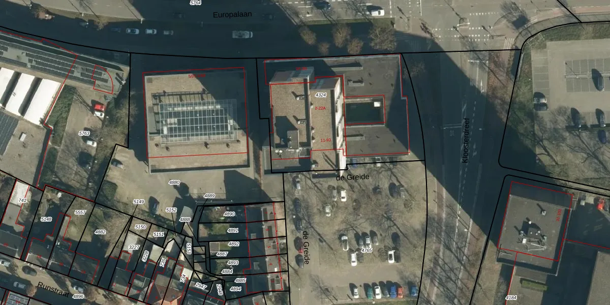 Het perceel waarop de Greide 89 staat heeft een oppervlakte van 1815 m². Dit is een zeer groot perceel. De perceeloppervlakte wordt geregistreerd door het Kadaster. Gedetailleerde informatie over de maten van dit perceel kunt u vinden in het rapport Kadastrale kaart met maatvoering van de Greide 89.