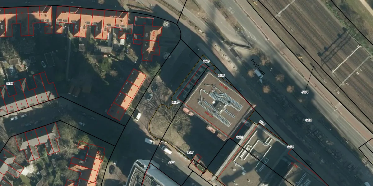 Het perceel waarop het adres ligt is STR03-C-6487. De afkorting 'STR03' staat voor kadastrale gemeente Strijp. Het perceel is kleiner dan gemiddeld in Strijp. Het perceel is 340 m² groot, terwijl het gemiddelde ligt op 1881,11 m². Het grootste perceel in de kadastrale gemeente is 1,87 km². Het kleinste perceel heeft een oppervlakte van 0 m². Er zijn 4 adressen aanwezig op het perceel. De huidige grenzen van het perceel zijn digitaal in de Basisregistratie Kadaster (BRK) geregistreerd op 25-02-2022.
