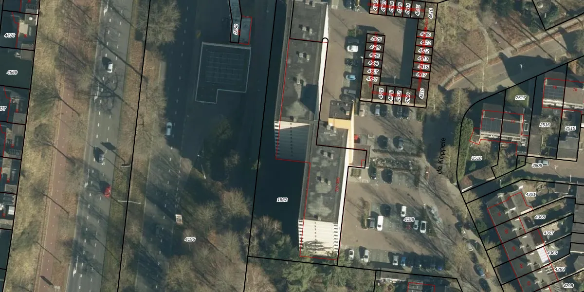 de Koppele 323 is gelegen op kadastraal perceel WSL01C1862. Deze kadastrale aanduiding is uniek en wordt gebruikt door het Kadaster om eigendomsrechten en andere zakelijke rechten vast te leggen. Het perceel maakt onderdeel uit van de kadastrale gemeente Woensel.