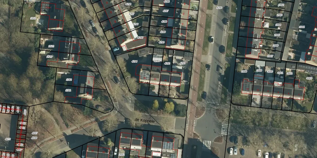 de Koppele 50 is gelegen op kadastraal perceel WSL01C4293. Deze kadastrale aanduiding is uniek en wordt gebruikt door het Kadaster om eigendomsrechten en andere zakelijke rechten vast te leggen. Het perceel maakt onderdeel uit van de kadastrale gemeente Woensel.